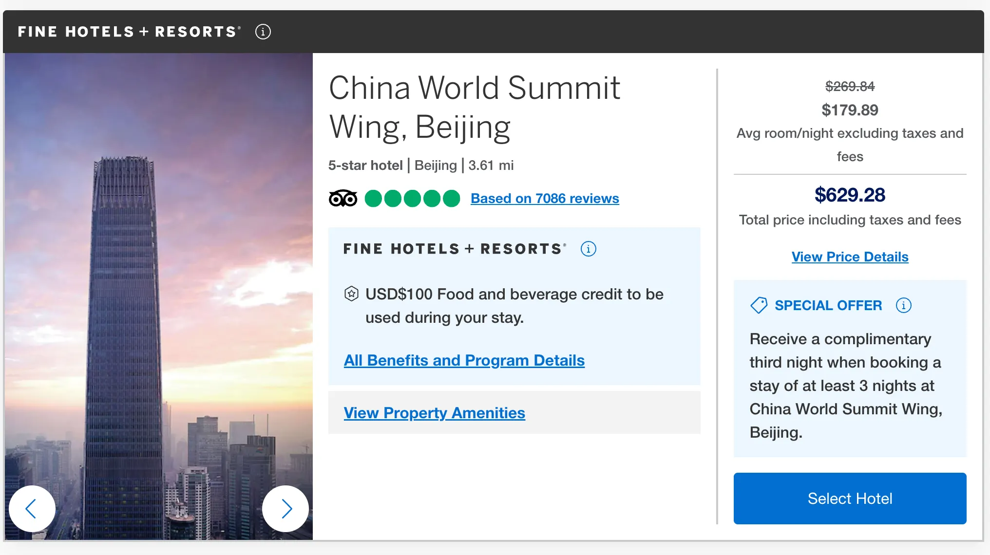 China World Summit Wing, Beijing- 629.89 for 3 nights → 329.89